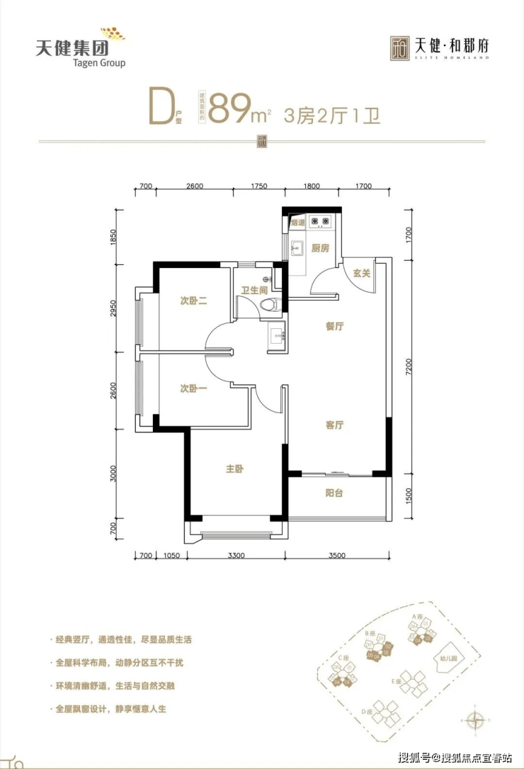 天健和郡府,匠心打造建面约89㎡全南向3房,为不同家庭需求生活量身定制,3梯6户,让出行更加便捷高效。单价约4.39万/㎡起,首付58万起,毛坯备案价带装修交付,以方正格局、实用玄关、宽境阳台等设计巧思,为每一个家庭构筑品质舒居生活。
