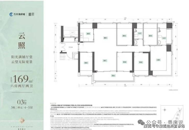 超16米东南采光面,阳台超7米宽;主卧进深4.5米,L型飘窗可270度景观。