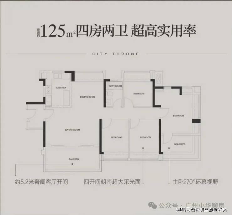 【建面约125㎡ 四室两厅两卫 超高实用率】