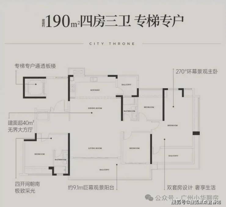 【建面约190㎡ 四室两厅三卫 专梯专户】