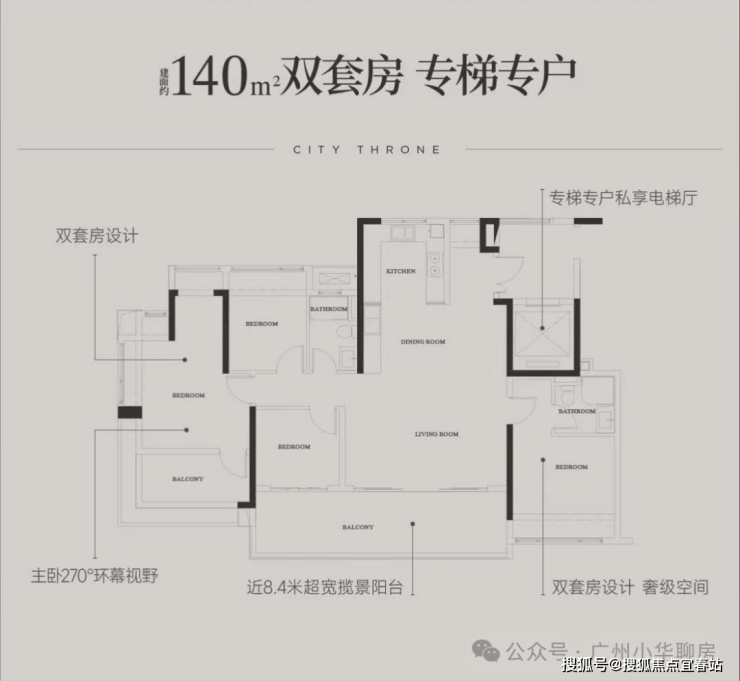 【建面约140㎡ 四室两厅三卫 双套房专梯专户】