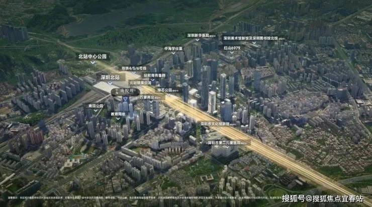 深圳北站总部基地:作为深圳七大总部基地之一,以高标准缔造,形成多元复合的国际会客厅。规划双芯三谷、城市一体化空间结构,以城市超核为中心,打造全新体验的城市新封面,成就湾区未来枢纽超级地标。