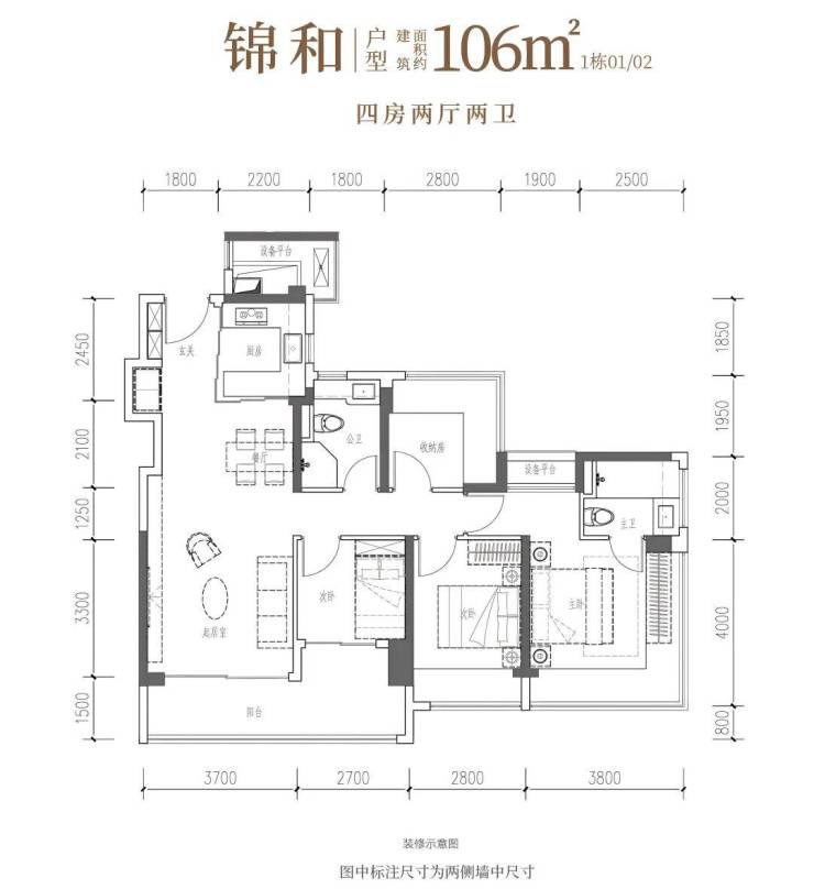 折后总价约490-529 万,单价约4.7-4.98 万 /㎡。双龙抱珠神户型,三个房间带 270° 飘窗,通风静谧俱佳。3.7 米客厅开间,LDKB 一体化,空间通透无浪费。得房率超 100%,四房两卫格局,适配三代同堂,刚改优选。