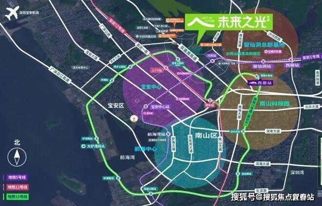 万科未来之光项目是万科联合人才安居集团打造的超30万㎡的理享生活大城。 未来之光项目直线距离前海不到6.5公里,受“南山+宝安”双核心辐射。从项目出发,开车仅半小时可到达深圳最主要的工作区域:宝安中心、留仙洞、南山科技园、前海后海、车公庙、福田CBD等。步行可达地铁5号线兴东站,规划中的地铁15号线被称作“深圳一环”,涵盖了会展新城、海洋新城、太空港片区、铁仔山科技城、宝中及大铲湾、前海核心区、留仙洞总部基地、尖岗山高新园、蛇口片区等大湾区乃至国家大力发展的产业片区。