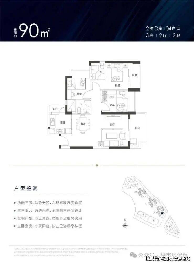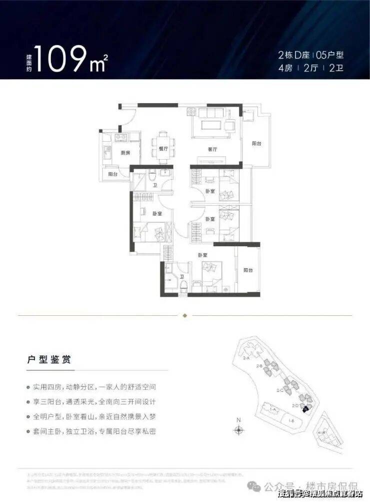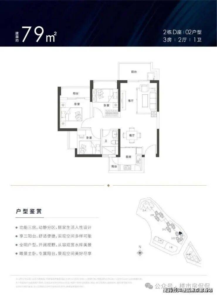 建面约78-129㎡3-4房户型方正,南北通透,享主卧、客厅、厨房三阳台设计,超高使用率,拥有超大景观面,居家即可观美景。