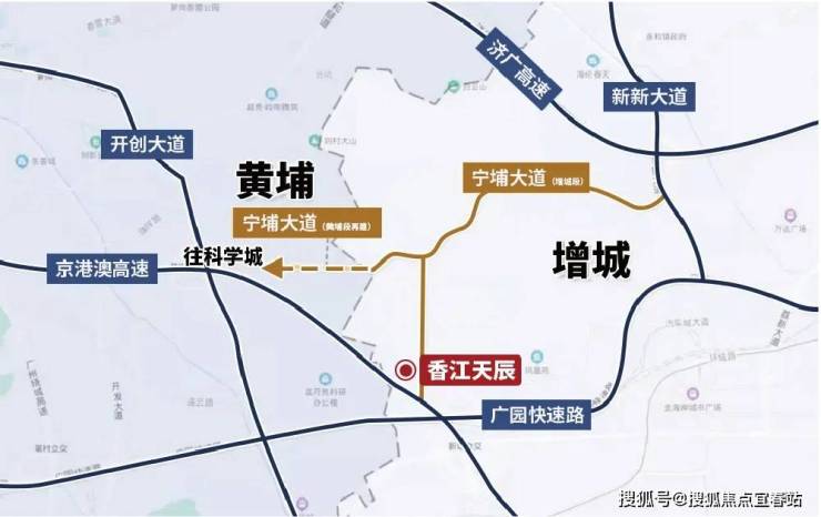 交通方面,自驾比较方便,可以通过广深高速、广园快速、广深大道,快速通达黄埔、科学城、天河等中心区,特别对科学城白领来讲,出门不远就是已经局部通车的宁埔大道(预计2024年底会全线开通),双向六车道为你的畅通出行保驾护航,未来,只要一首歌的时间,就可以从这里自驾到科学城,一集新闻联播的时间,更是可以到金融城、珠江新城等核心区域,自驾出行还算便捷。