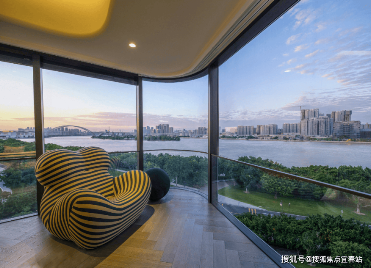 从阳台往外看的第一眼就是繁华城景与江景汇聚的城市眼界,城市繁华与江景静谧兼得,象征事业与生活的平衡圆满。