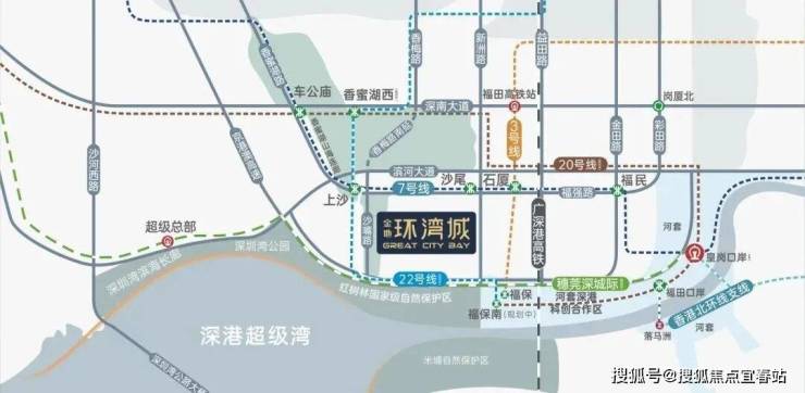 双地铁线,7 号线的上沙站、沙尾站,以及规划中的 22 号线(双线交汇于上沙站), 1 站就能直达香蜜湖新金融中心与国家级河套深港创新合作区。两超级口岸更是为深港往来提供了极大便利,皇岗口岸深度改造,福田口岸快速通行香港会展、金钟等核心片区。此外,规划中的沪深高速磁悬浮,约 2.5 小时可通达沪深;穗莞深城际铁路(在建中)、深广中轴城际铁路(规划中)、香港北环支线(规划中)等 3 条城际铁路,构建大湾区“1小时生活圈”,无论是商务出行还是休闲旅游,都能轻松畅达。
