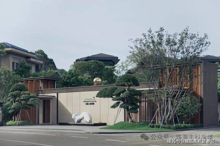 门口雕塑由国际著名艺术机构 UAP 的艺术大师 SOPHIE 手工雕刻而成,山管人丁水管财,山之形象征着人丁兴旺、富贵有靠
