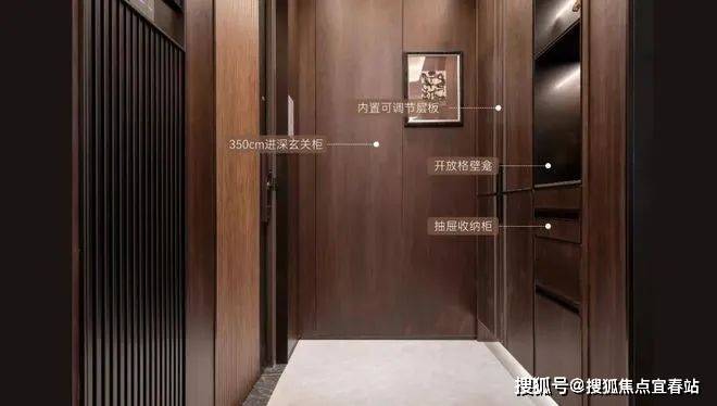 入户后贴心玄关设计,根据对居者生活习惯的研究,匠造约350cm进深玄关柜,内置可活动层板,灵活承载更多收纳空间。开放格摆放主人精心挑选的艺术藏品,入门即彰显优雅品位。