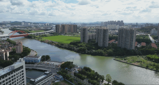航拍视角下,能从岐江河大桥一路望到中山二桥,风景这边独美,唯一小遗憾就是西侧望江。