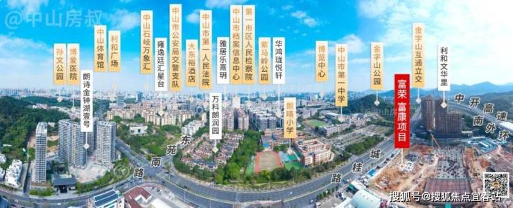 富荣富康项目,位于东区核心CBD地段——“朗小-市一中”板块,南侧是中开高速,北侧与朗晴小学、中山市第一中学隔着1条城桂路。