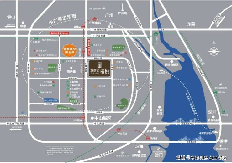 小區離高速口約公里,無縫對接廣珠西線及廣中江高速,約15分鐘速達順德新城、南沙國際金融島,約30分鐘速達廣州主城區,約45分鐘速達深圳前海、珠海橫琴 、澳門、東莞主城區(獅子洋通道在建),70分鐘速達香港。