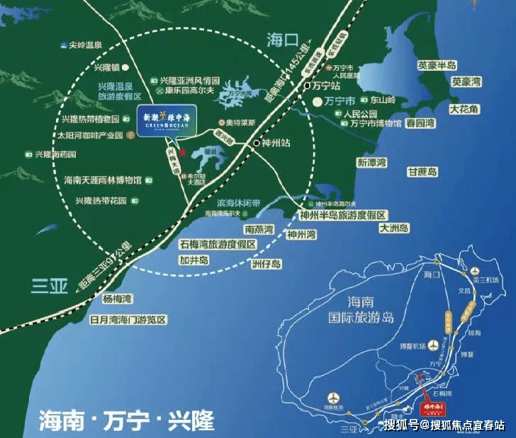 恰处兴隆国际旅游度假区、神州半岛国际旅游度假区、石梅湾国际旅游度假区三大度假核心区的中心位置