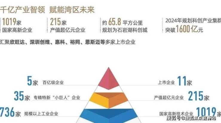 石岩科创城(规划面积65.8万平方公里)汇聚高端科技资源,驱动产业升级,形成产业集群效应,成为推动区域经济高质量发展的关键引擎。在2024年已汇集超过1019家国家高新技术企业,拥有215家产值超亿元企业,已汇聚欣旺达、深圳创维、惠科、裕同、恩斯迈等11家上市企业,规划科创产业集群突破1600亿元。