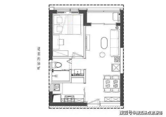 目前在售的商务公寓户型包括44㎡的1房、53-56㎡的1房以及63-65㎡和71㎡的2房2厅1卫。