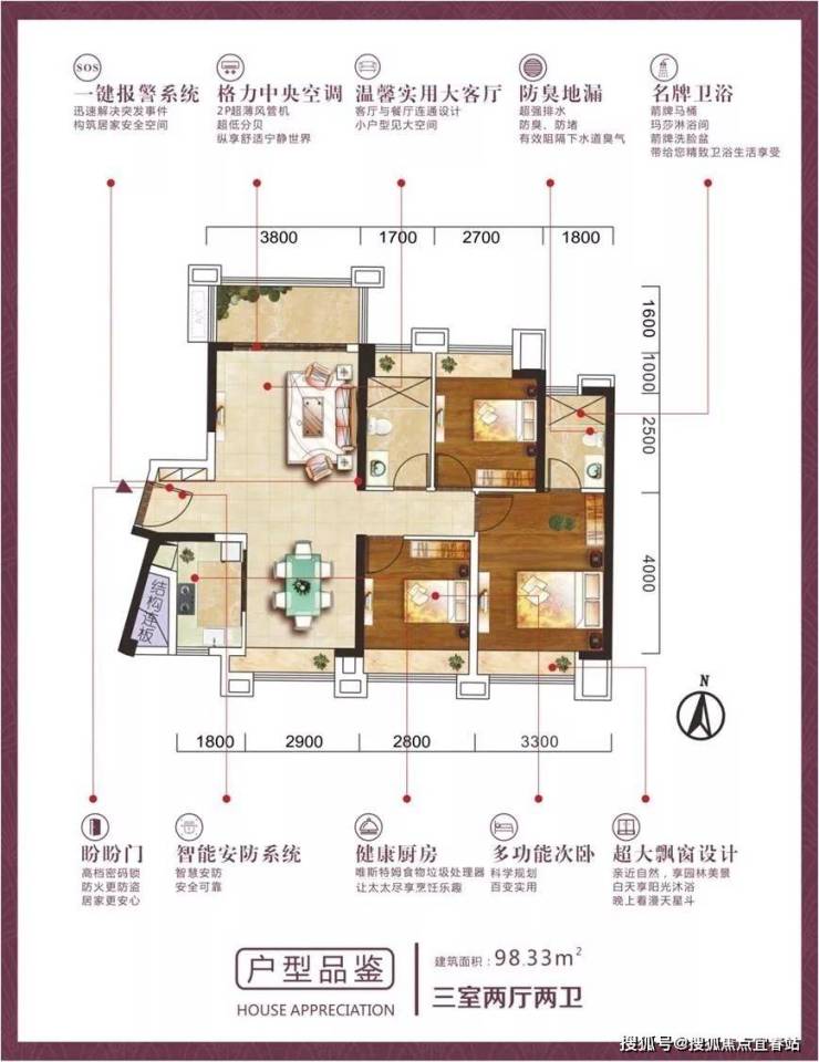 约98.33㎡,三室兩厅兩卫