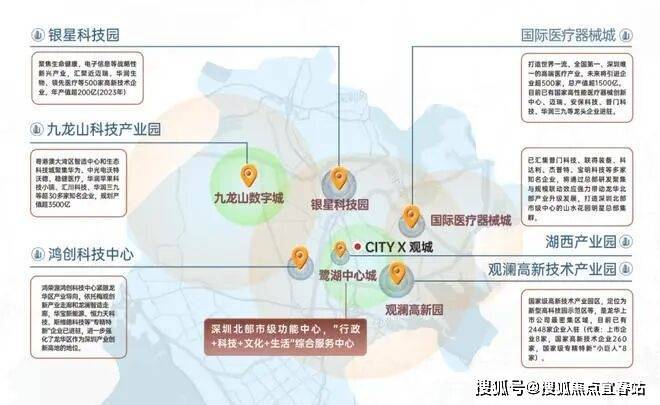 观澜占据龙华70%产业,鹭湖中心城与九龙山数字城双核驱动,聚焦人工智能、生物医疗等高新技术产业;