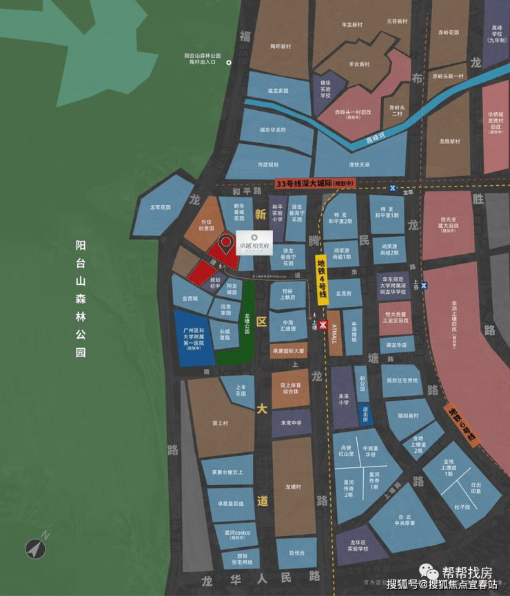 本项目占地约2.45万㎡,建面约17.95万㎡, 占据龙华上塘城市繁华与阳台山等生态配套,一步繁华,一步隐遁。整盘870户,整体以超高层进行设计,打造隐奕森居中央园林社区。可售住宅所在地块超高层共计4栋,3梯5户,全南向设计,40%瞰山户型,是难得的远瞰山、森居园林、全南向、全改善户型居住社区。
