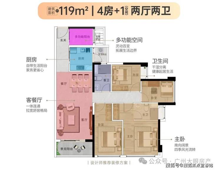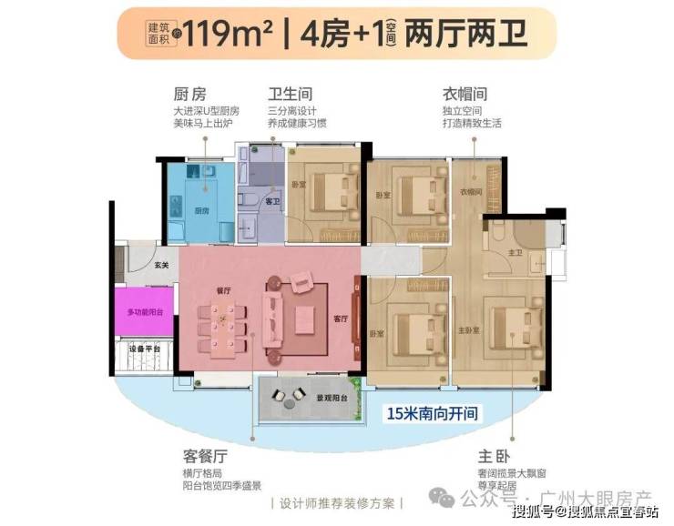 【119㎡4+1房2厅2卫】单边位布局,15米南向开间,南北通透
