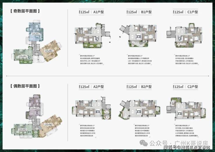84方奇数层户型,3房2卫,竖厅格局,客厅可以和次卧打通成为一个超级大方厅。四开间朝南,南向面宽去到12.4米。空中花园面积达20㎡。