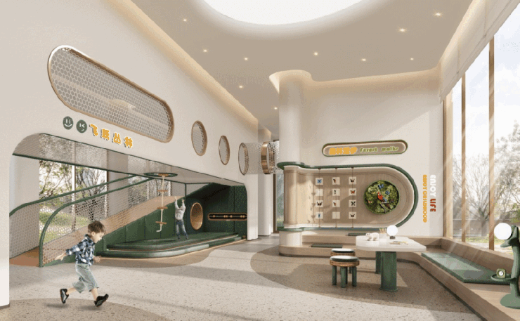 招商林屿境在人为造陆,在架空层内,融入丰富的场景活动。