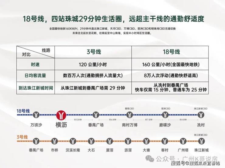18号线横沥到万博商务区,24分钟;到磨碟沙37分钟;到冼村42分钟。