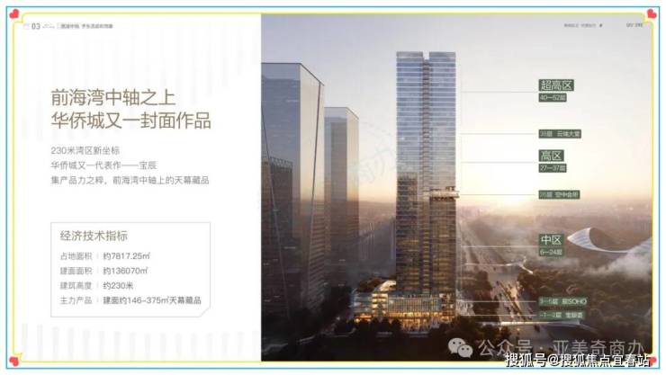 【建筑高度】230 米(宝中地标),共 52 层;