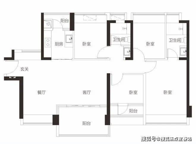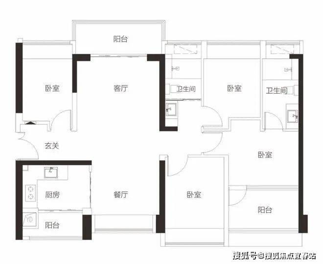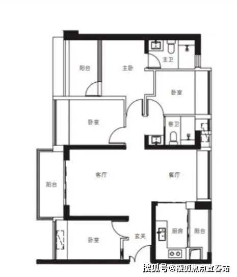 【3栋4栋05户型119㎡4房2卫】客厅朝西带阳台,3房朝西,1房朝东单价区间:7.57-7.8万 总价区间:900-930万