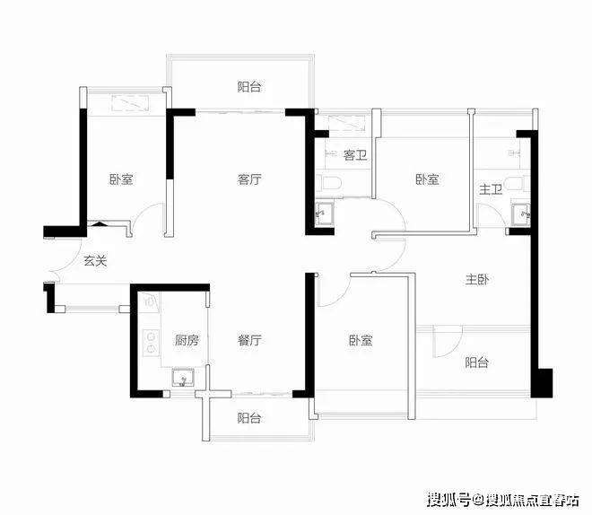 【115-118㎡4房2卫户型】双龙抱珠设计,主要生活空间 ,看中心园林景观舒适四房,三面采光,全明户型 单价区间:7.57-7.82万/㎡ 总价区间:878-920万