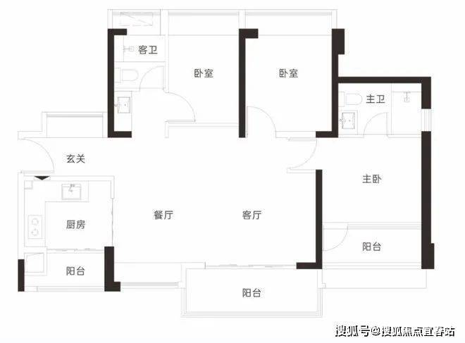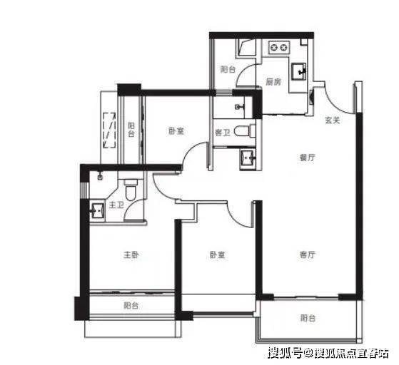 【3栋4栋03户型107㎡3房2卫】客厅横厅朝南带阳台,主卧朝南,2房朝北 单价区间:7.2-7.5万 总价区间:770-805万
