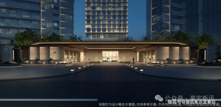 立面设计以“温暖港湾”为灵感,寓意航海远行后满载归来,让人们在城市之心就能抵达温暖港湾,尽享轻奢栖居。从广深沿江高速、深中通道的视角看,天际线呈前中后三个层次高低起伏,形成流动天际线,焕启一眼惊艳的天际风尚。