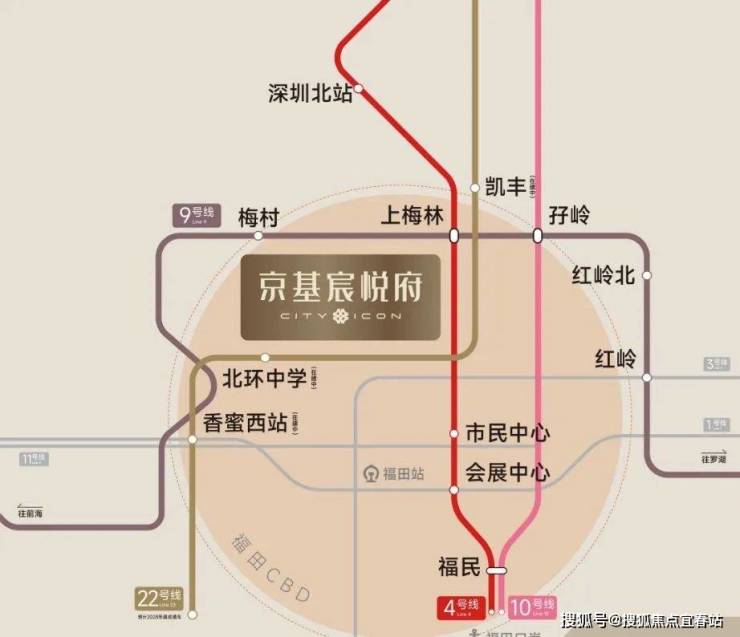 三轨交汇:地铁9号/4号/22号线(在建)交汇,距上梅林站约300米;22号线开通后直抵香蜜湖