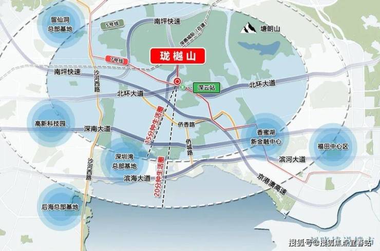珑樾山位于南山区侨城北片区,地处深圳湾超级总部基地与华侨城生态广场之间,占据南山核心区位。项目背靠约10万㎡燕晗山郊野公园,是深圳中心城区罕有的半山住宅项目。