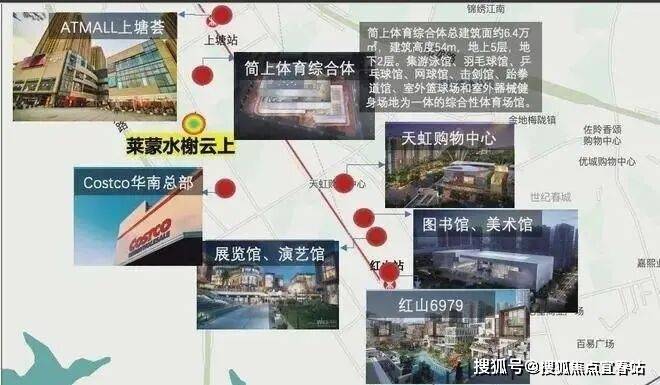 商圈文体:五馆三Mall,最具规模的工建资本投入—两公里范围内涵盖五馆三Mall,与赛事级简上综合体一路之隔,与Costco华南总部直线距离400m。