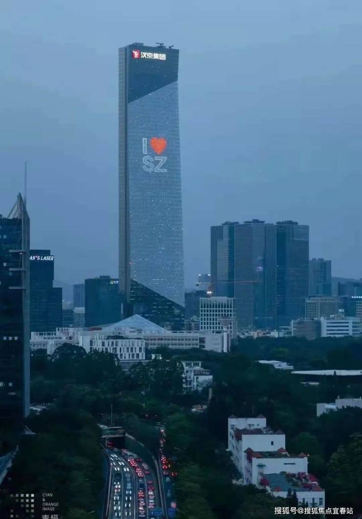 汉京中心位于深圳深南大道旁,集商业与商务于一体的超甲级写字楼。该建筑为亚洲最高全钢结构大楼,高350米,是世界最高核心筒分离建筑、世界最多蝶形节点建筑,也是唯一可售的稀缺资产和城市地标性建筑。由精诚建设者中建四局打造,荣获中国建筑钢结构行业工程质量最高荣誉“中国钢结构金奖”。乘坐扶梯至办公区大堂,沿途可欣赏深南大道和深圳大学风景;步入商业裙房,流动感环绕四周,空间形式随视线上移而变化,巨大中庭成视觉焦点。