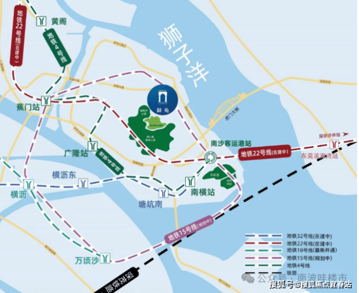 从地段上来看,南沙湾,位于虎门大桥以南、黄山鲁森林公园以东、凫洲水道北侧、狮子洋西侧,处于珠江主入海口位置,是连接珠江口两岸城市群和粤港澳地区的重要枢纽性节点。