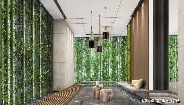 架空层泛大堂采用“前庭后院”的创新设计理念,遵循“生态情景空间美学设计”将“双庭十院”园林与大堂连接,环保耐久选材,自然采光通透空间,打造了环境与人和谐共生的“会呼吸”的生活空间(该设计荣获SIDA新加坡设计奖)。