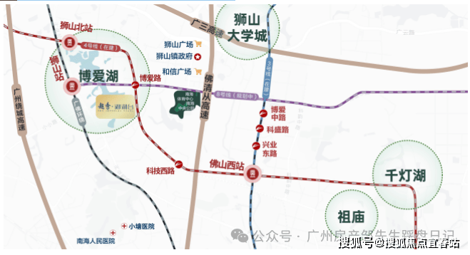 距离佛山地铁4号线、8号线博爱湖站约800米,通达禅桂顺,距城轨狮山站约900米,距佛山西站约6公里,高铁到广州南站仅约15分钟,轻松融入大湾区1小时生活圈。