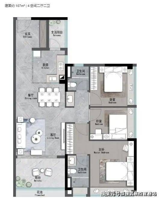 得房率:超95%,户型南北通透,主卧套房设计