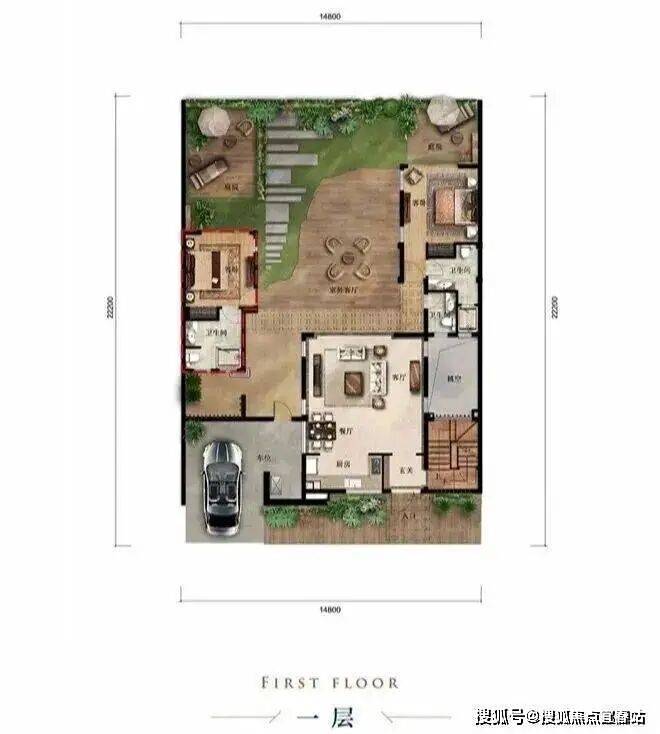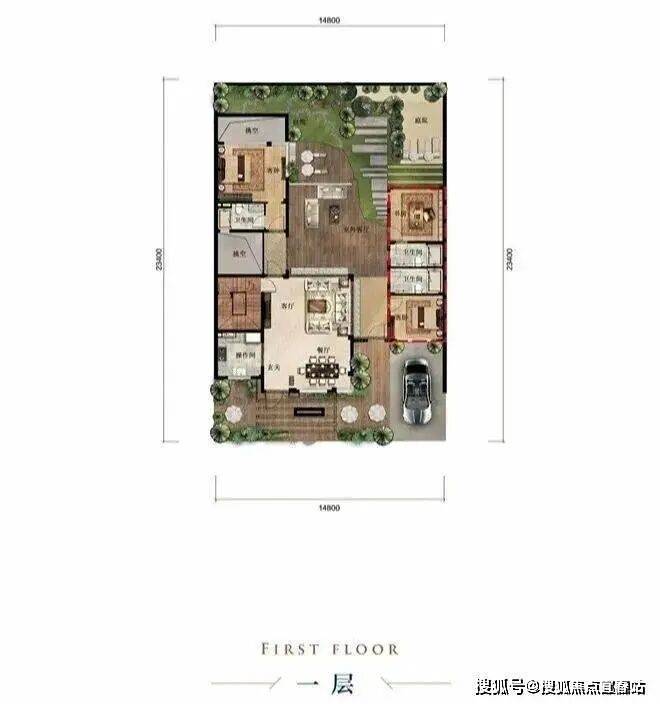 首层独立入户、餐客厅等宽一体设计、方正露台