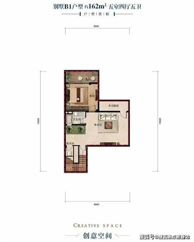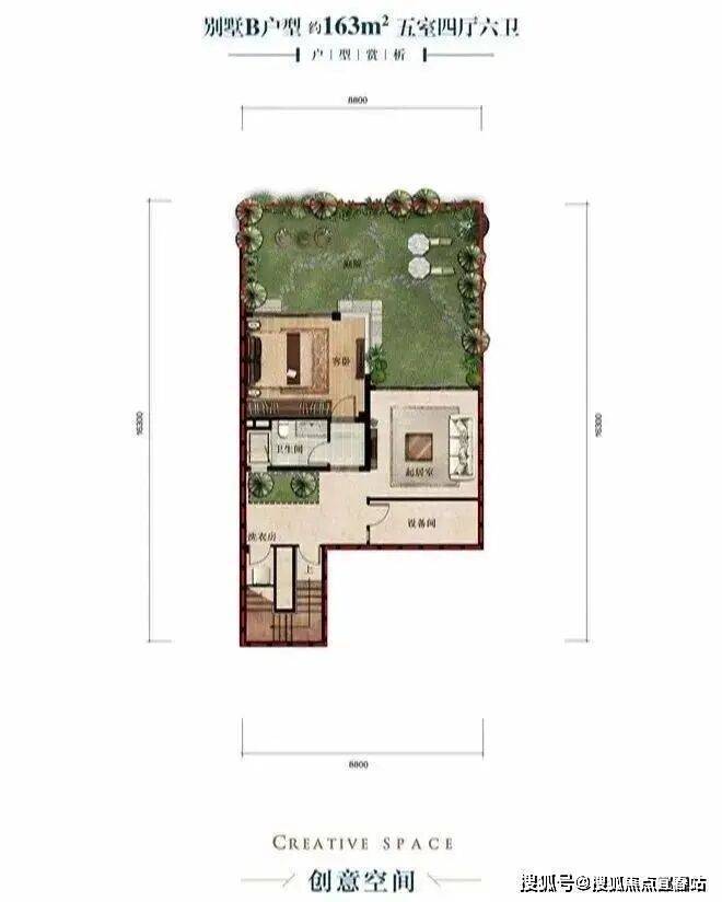 全套房设计(B1户型与B户型基本相同,B1户型为地上花园,B户型为地下花园)。