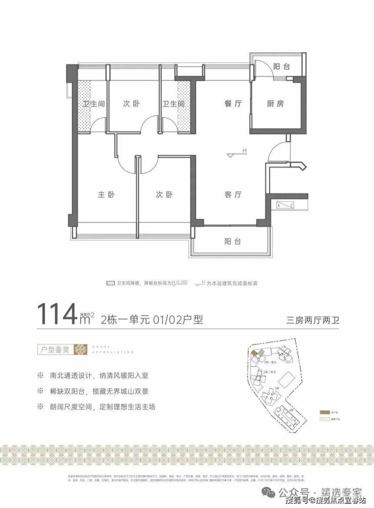 住宅:主力户型为110-143㎡三至四房,精装交付,部分户型双阳台设计,南北通透,预计2026年4月交付。