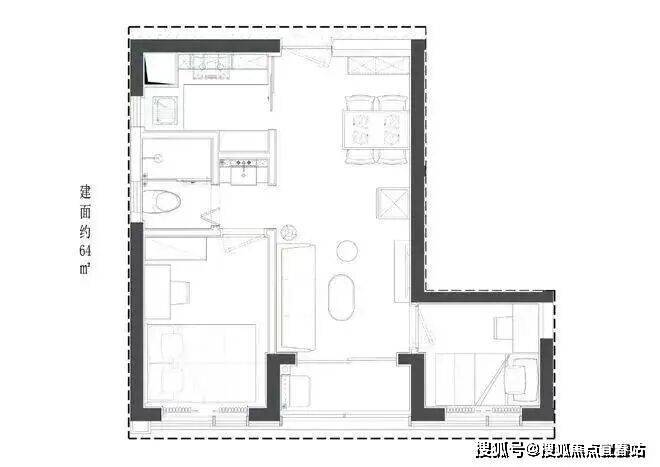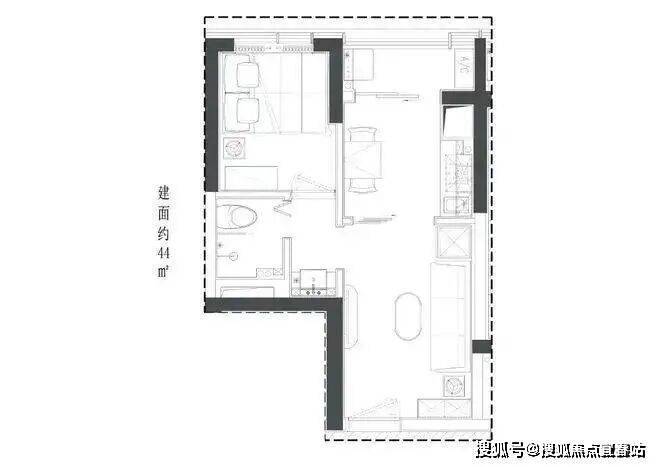 采用双大堂设计,户型是建面约 44-71㎡的 1-2 房精奢小户型,精致又实用。