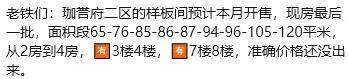 继上次珈誉府一区样板推售出来被抢售一空后,西部销冠项目珈誉府二区的所有样板预计月中推售,65-76-85㎡(横竖厅都有),86-87-94(横竖厅)。96㎡横厅,105-120㎡,共计70套货量,具体价格等通知,二区离学校更近!展示面更好。