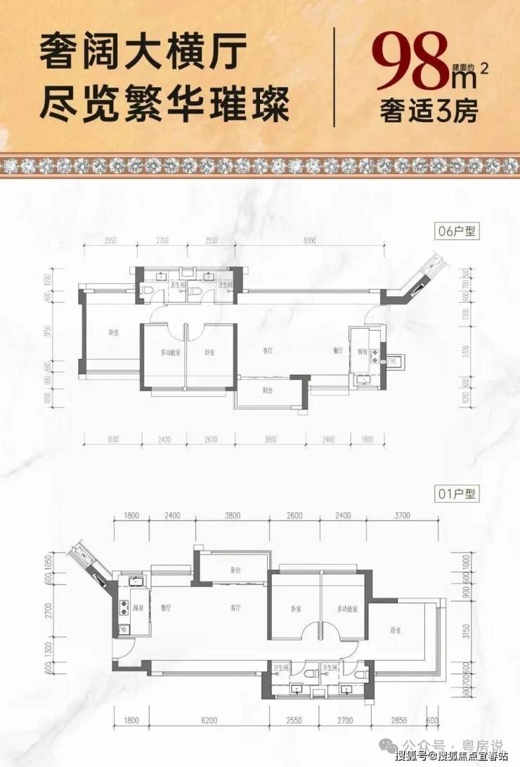 98㎡的3房2厅2卫,折后总价447-476万/套,单价4.55-4.85万/㎡。