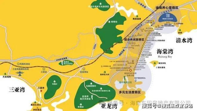 区位:国家海岸海棠湾,作为国家重点打造的综合性度假湾区, 22公里海岸线上,拥有比肩世界著名滨海旅游度假区的优越资源。为承载国家热带滨海旅游度假形象,以滨海酒店带、游艇休闲港、医疗及健康疗养基地三大核心,全面升级旅游度假产业。拥有12万平米免税购物中心、国家级医疗健康疗养基地解放军301总院海南分院、35家国际滨海酒店,拥有世界一流游艇基地、国际锦标赛级高尔夫球场、国家海洋公园、南中国影视城、梦幻娱乐不夜城、五星级IMAX万达娱乐影城、“神州第一泉”南田温泉等顶级度假配套。太古里、宽窄巷子、超级万象城等优质商业体也落地海棠湾。