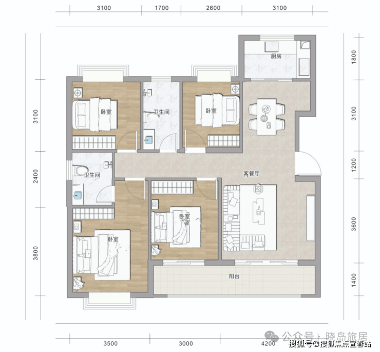 【1#北楼·建面约125㎡, 四室两厅两卫】
