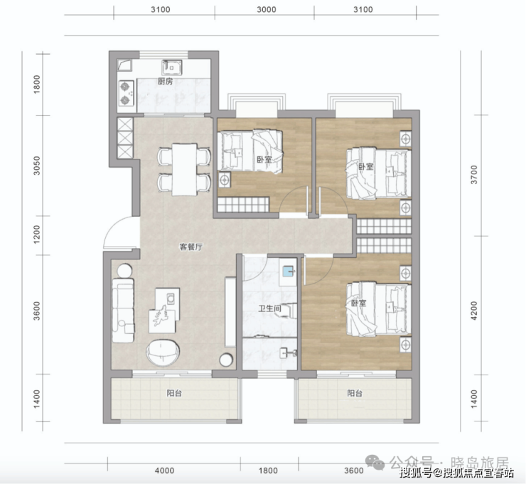 【1#北楼·建面约107㎡, 三室两厅一卫】
