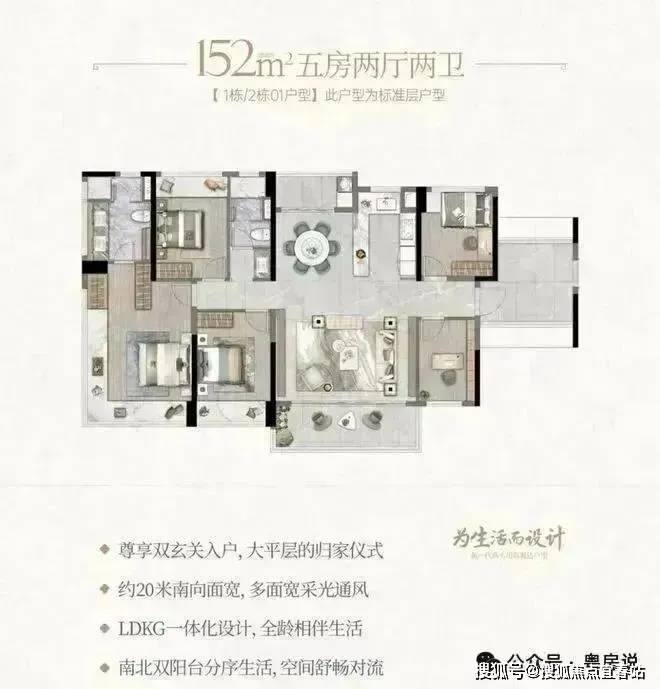 且配备双玄关入户、双阳台、 270°观景飘窗等配置。